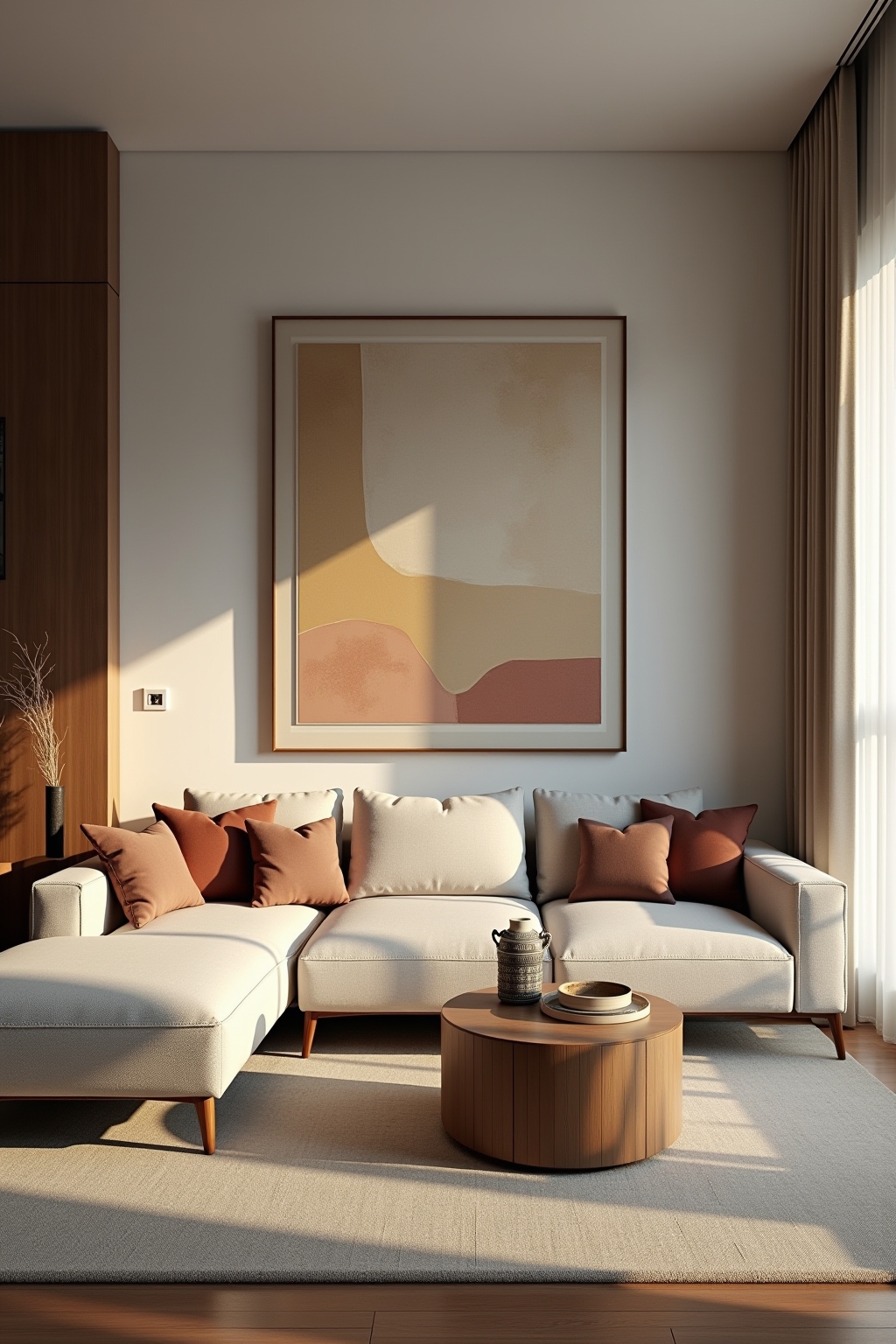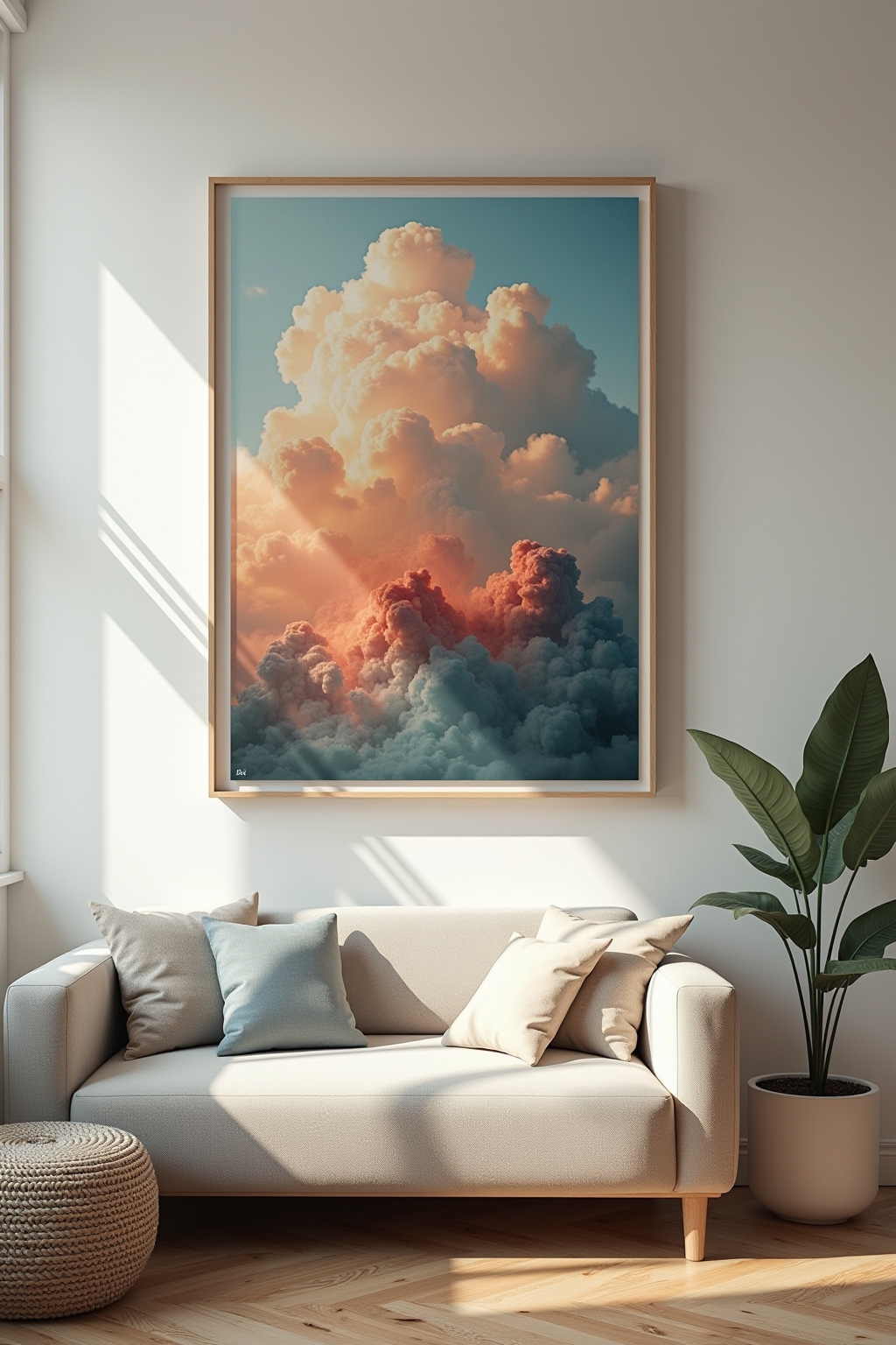Grote wanddecoratie kan een ruimte visueel groter laten lijken en werkt als een natuurlijk focuspunt in je woonkamer.