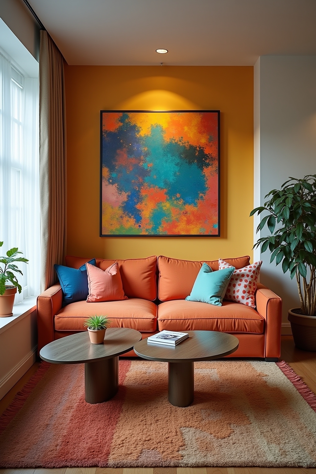 - Contrasterende kleuren creëren een focuspunt in je woonkamer.