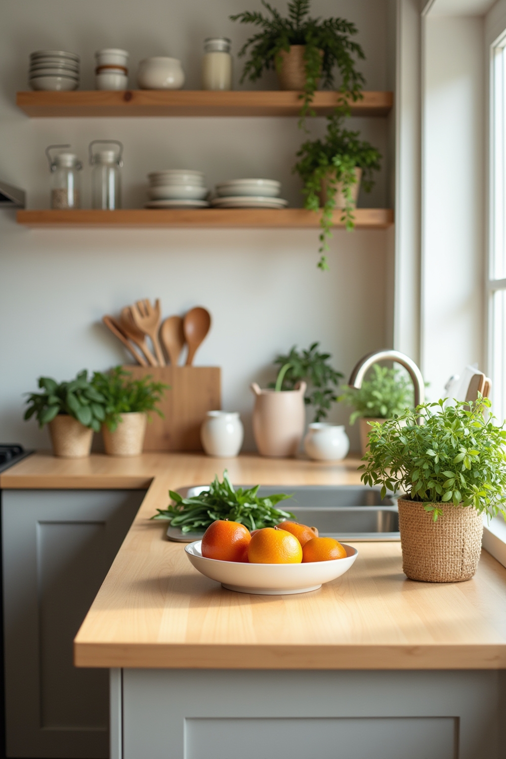 Handige tips: Kies voor keukendecoratie die ook functioneel is, zoals mooie snijplanken of kruidenplantjes.