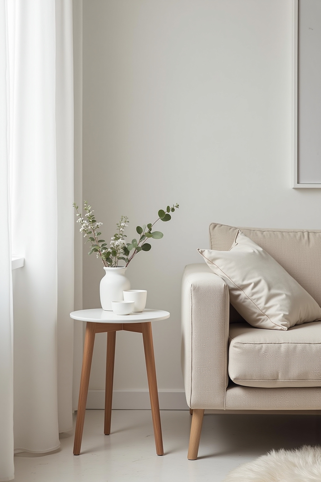 - Beperk het aantal decoratieve elementen op kleine salontafels.