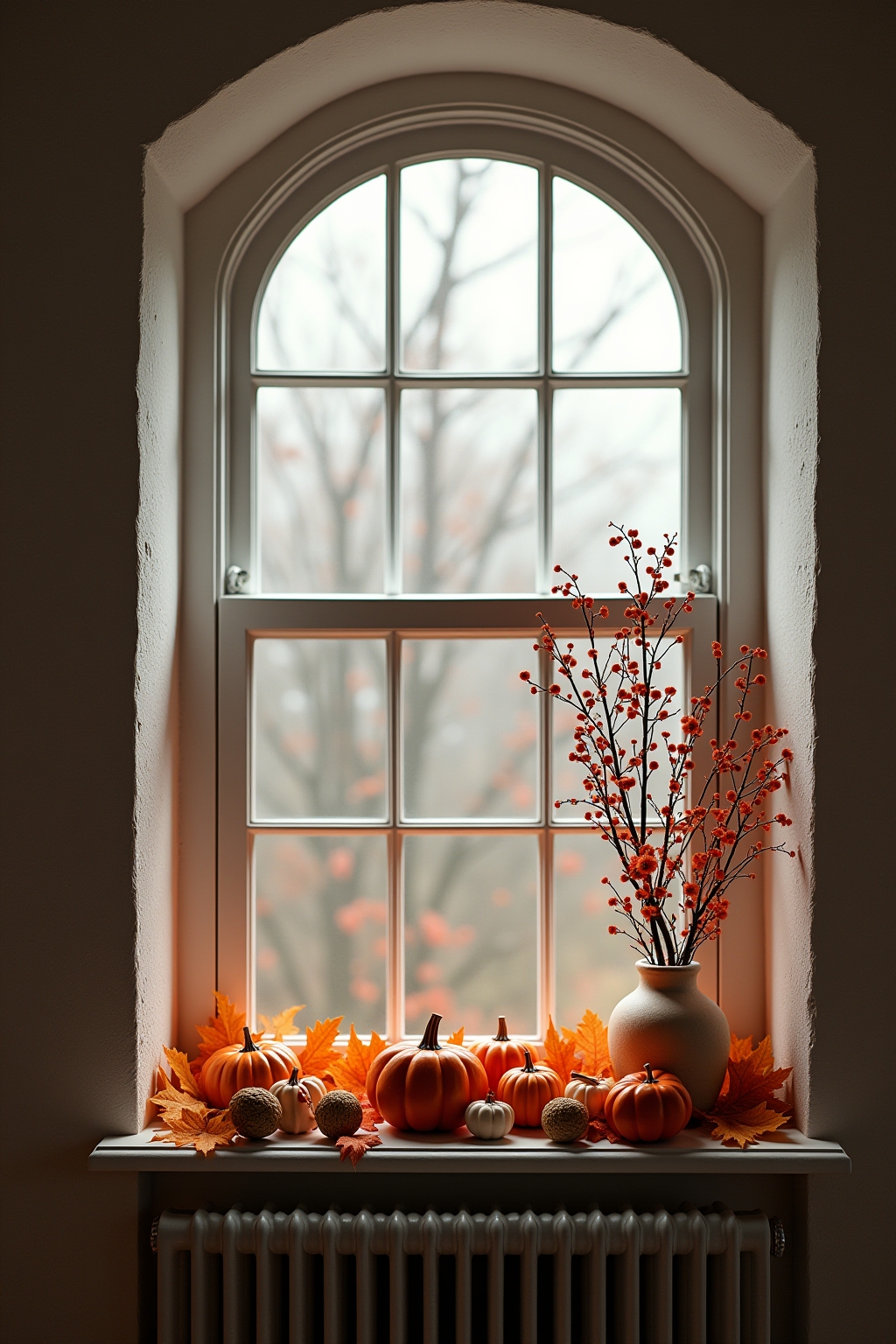 Seizoensgebonden vensterbank versieringen voor grote ramen