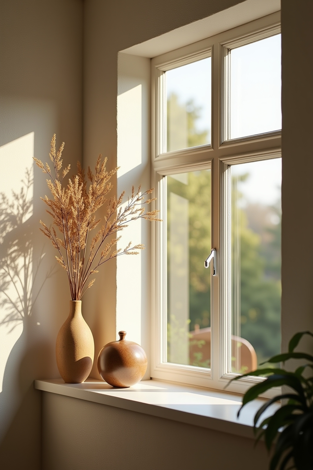 Minimalistisch design: strakke vensterbank decoratie voor brede ramen